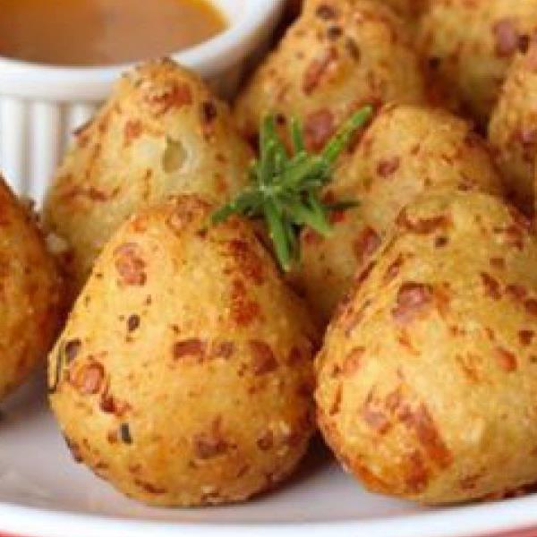 Imagine uma versão de coxinha que não coloca a dieta – muito – em risco porque a massa é feita de frango e tapioca recheada e o recheio é de queijo minas sem lactose.